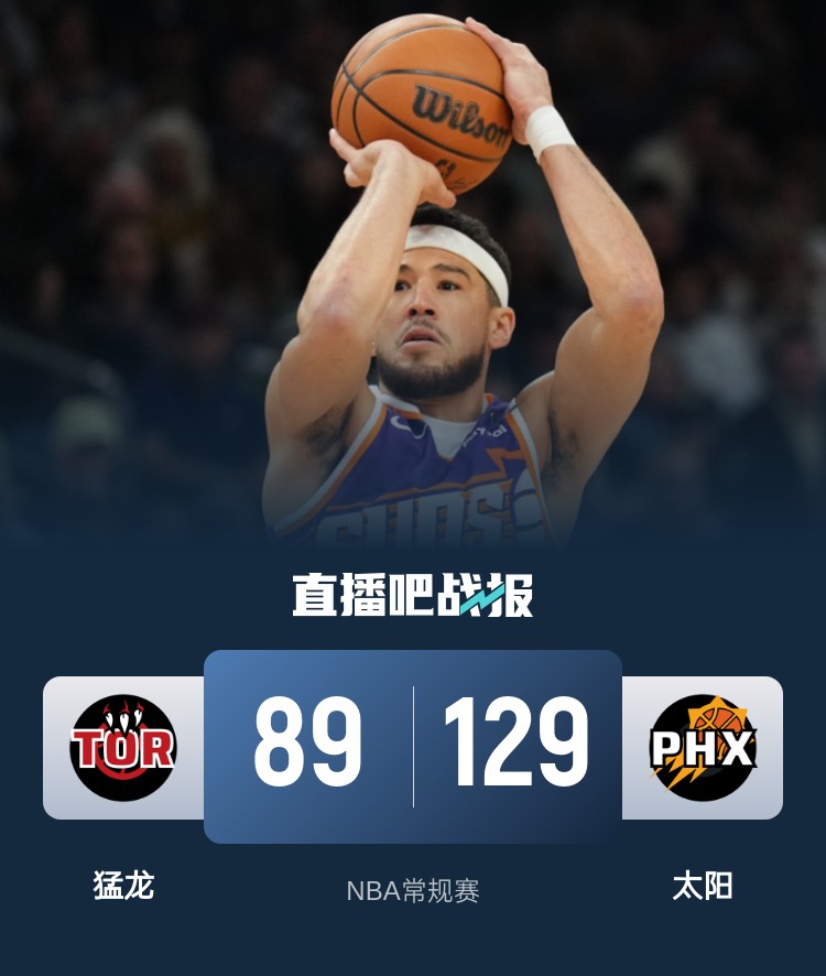 一开场,双方势均力敌,比分咬得很紧,次节太阳持续发力轰出23-4的攻击波取得领先,猛龙全队哑火,单节仅拿到11分,半场战罢太阳63-40领先猛龙。下半场太阳稳扎稳打保持优势,布克和杜兰特联手带队扩大领先,末节分差继续扩大,双方换下主力,耗完垃圾时间,最终,太阳129-89大胜猛龙。
