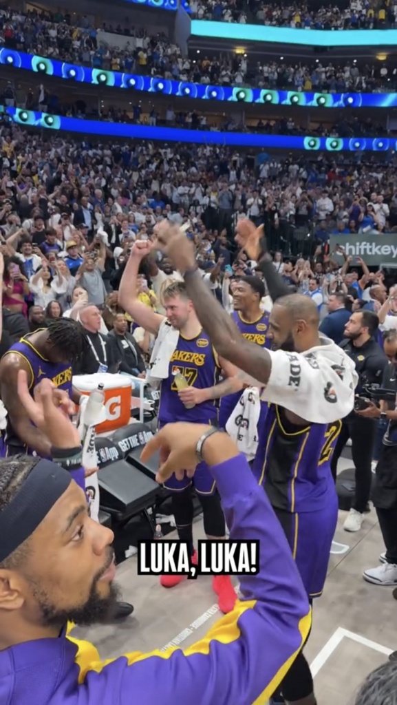 当被问到当赛后东契奇回到更衣室内全队的庆祝内容是什么(记者表示听到了很大的庆祝声响),詹姆斯说:“我说过了,我们一直在这里支持他,无论采取什么形式,今晚我们尽一切努力来支持他。那从我们一起踏入这座球馆的那一刻开始,一直到他走入更衣室为止。我们就是很高兴能参与他的历程。”