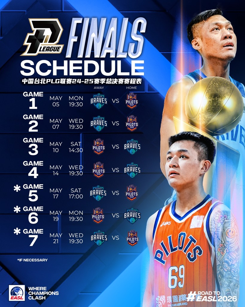 桃园璞园领航猿和台北富邦勇士还是在2025-2026赛季的东超最早晋级球队。双方的P. LEAGUE+总决赛系列赛5月5日揭幕,采用7场4胜制。
