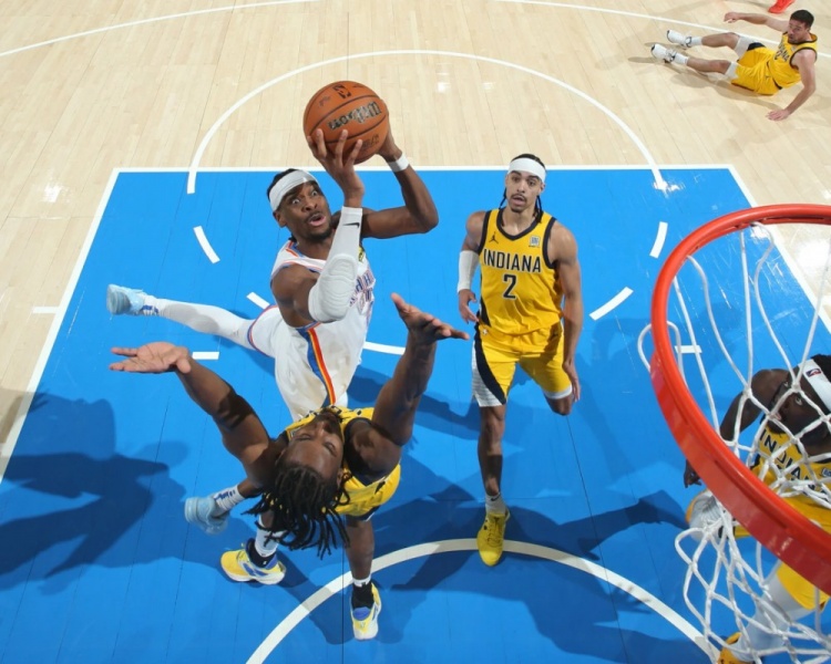 G5这轮系列赛天王山,很最接近我们对类似雷霆打法和类似步行者打法球队的刻板印象。前者硬解更强,个人能力轻松创造机会。后者胜在组织能力和错位进攻。当比赛去到高端局时,硬解已经成了一种球迷信仰的解决问题手段。反过来,错位进攻可能会找不到错位。
