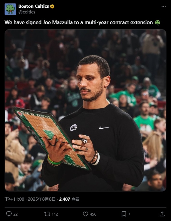 08月08日讯 今日,凯尔特人官方宣布已经与球队主帅乔-马祖拉签署了一份多年的续约合同。
