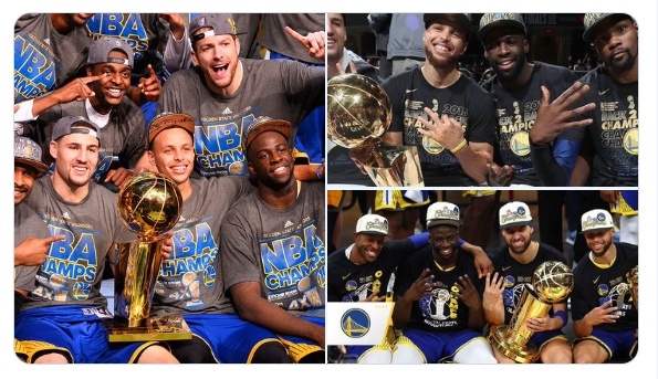 网友Garrett Queener晒出勇士三张夺冠图,分别是杜兰特加盟前、加盟后和离开后。该网友表示:“我给你看看这组照片,我称之为‘KD效应’。”