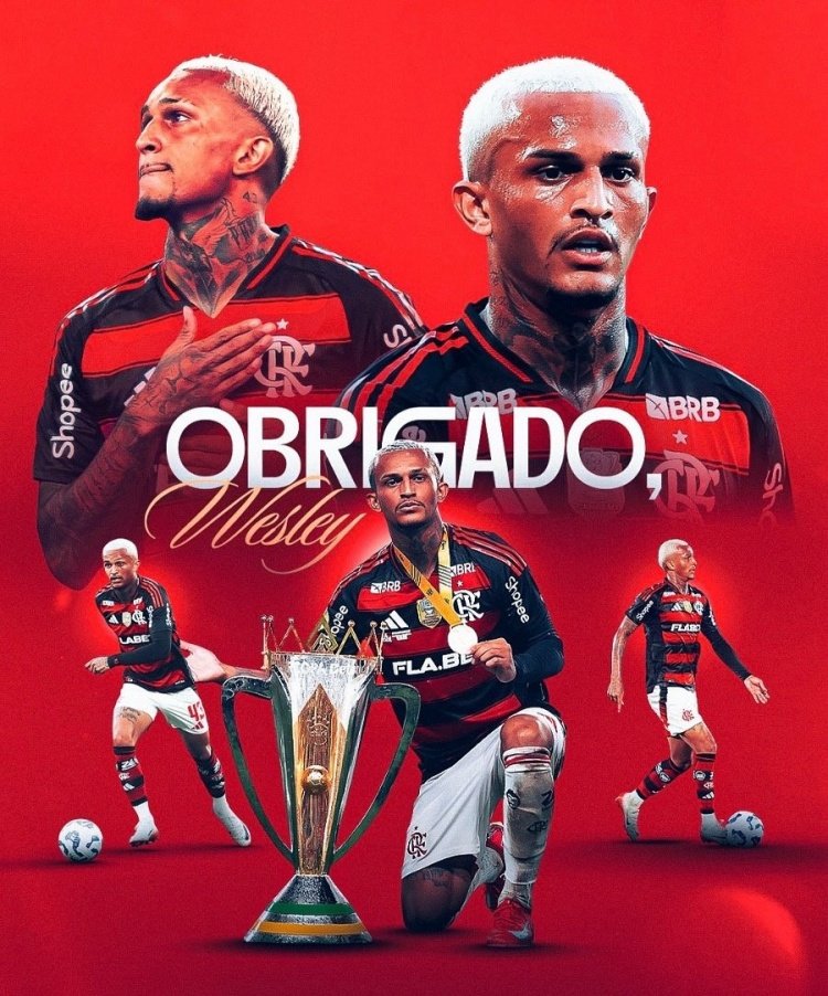 7月29日讯 21岁右后卫韦斯利-法兰卡将转会罗马,弗拉门戈官方为其送上告别信: