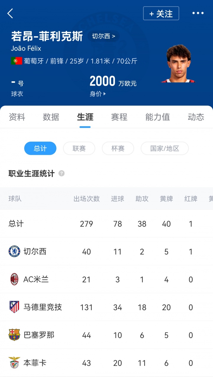 据此前报道,菲利克斯将以3000万欧元固定+2000万欧元浮动的转会费加盟利雅得胜利,切尔西希望收回在球员身上的投资。目前菲利克斯德转身价为2000万欧元,这位葡萄牙昔日金童现年25岁。