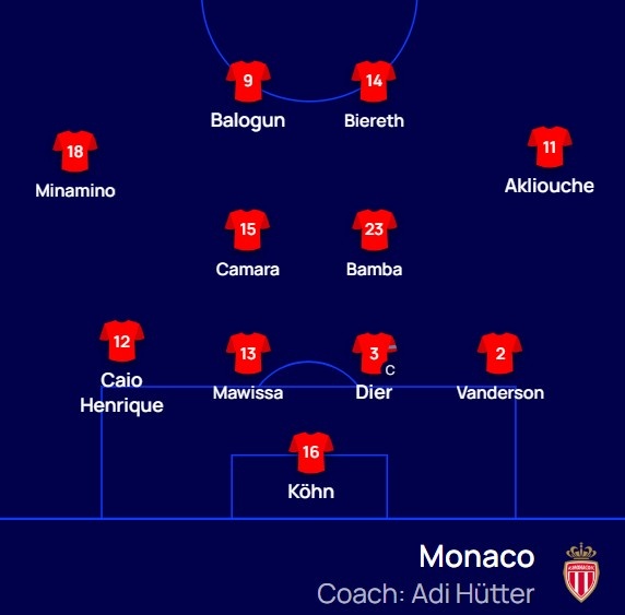 摩纳哥替补:50-利纳德、60-马蒂、4-特泽、5-科雷尔、17-伊杜姆博、19-伊列尼赫纳、20-瓦塔拉、28-库利巴利、31-法蒂