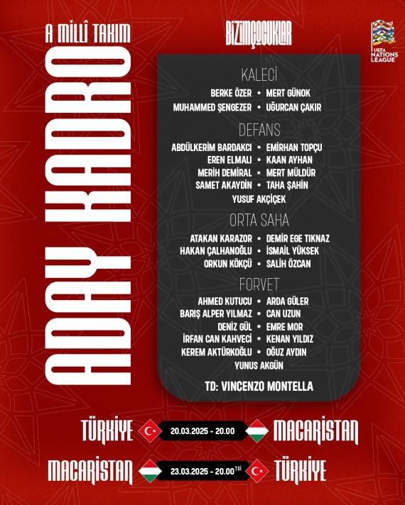 3月14日讯 土耳其最新一期名单公布,恰尔汗奥卢领衔,居勒尔、伊尔迪兹、科克库、德米拉尔、厄兹詹等球员在列。